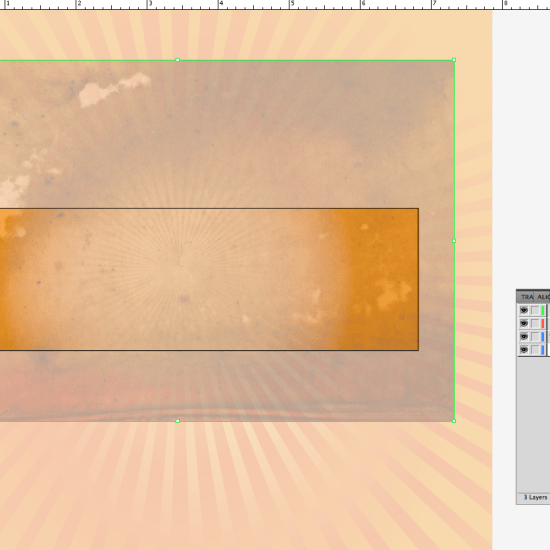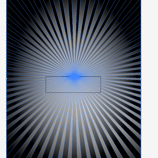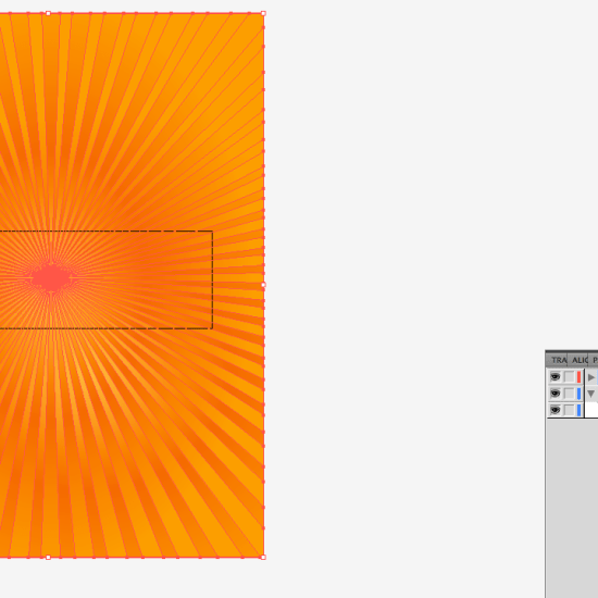 Then I went to Illustrator to design the background for the top section. I started with an orange box with radial gradient. There’s a faint starbust in the sample ad. Now, there are plenty of tutorials of how to make a starburst in Illustrator, and it’s fun to do, but I found one on Metro that I downloaded awhile back to save time on designs like these. I copied and pasted that into the Illustrator document, put it on its own layer, resized, changed the color and dropped the transparency.